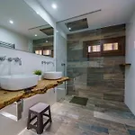 Tot de badkamerfaciliteiten van Villa Mitjorn Cala Canyelles behoren ook een apart toilet en een douche. Een haardroger en handdoeken zijn inbegrepen voor extra comfort.